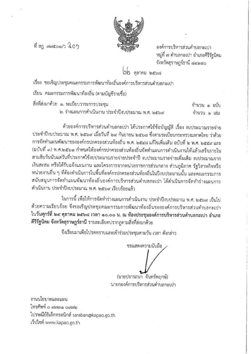 ยินดีต้อนรับ เข้าสู่เว็บไซต์ องค์การบริหารส่วนตำบลกะเปา อำเภอคีรีรัฐนิคม จังหวัดสุราษฎร์ธานี
