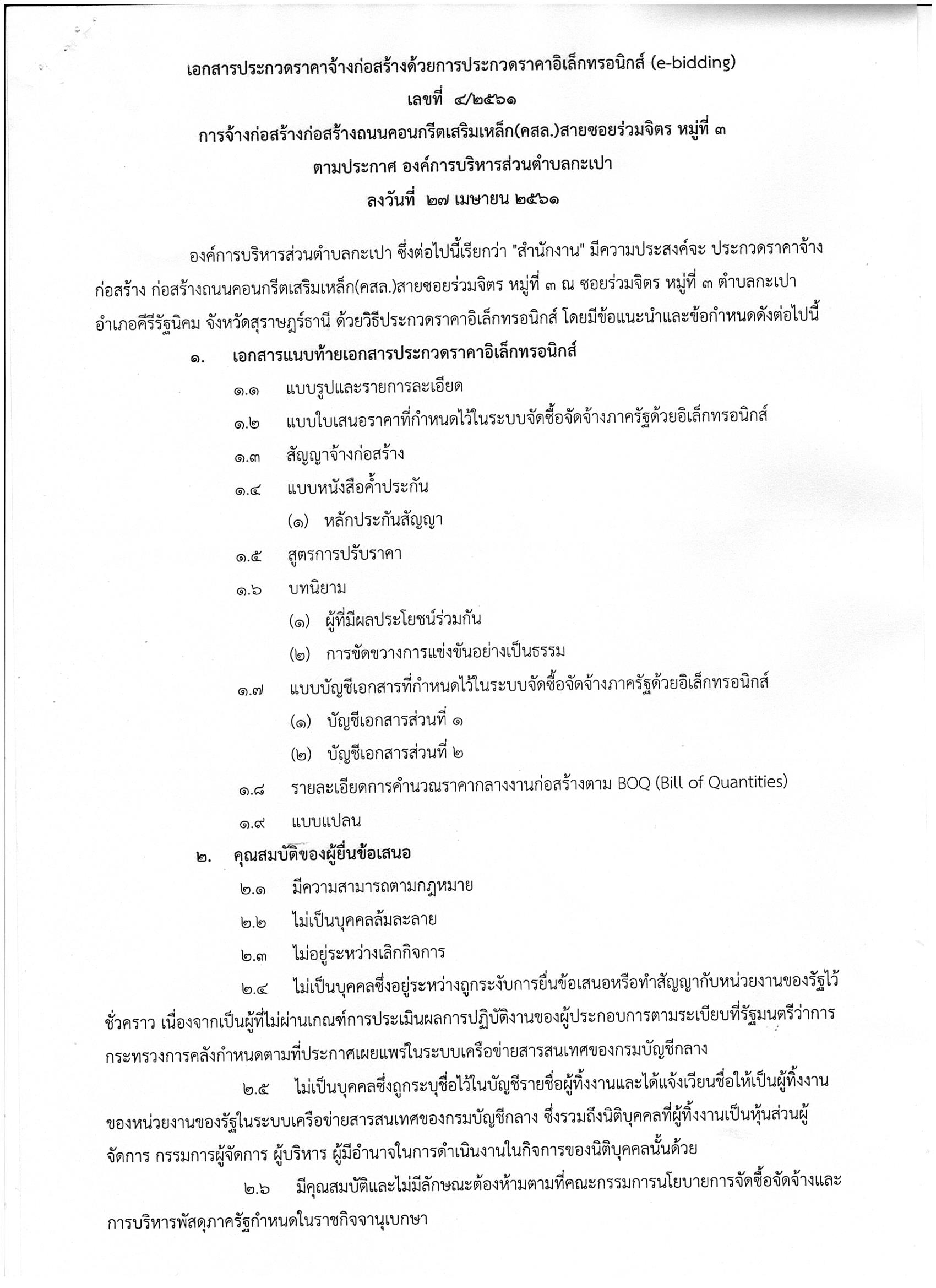 ประกวดราคาจ้างก่อสร้างถนนคอนกรีตเสริมเหล็ก(คสล.)สายซอยร่วมจิตร หมู่ที่ 3 ด้วยวิธีประกวดราคาอิเล็กทรอนิกส์ (e-bidding)