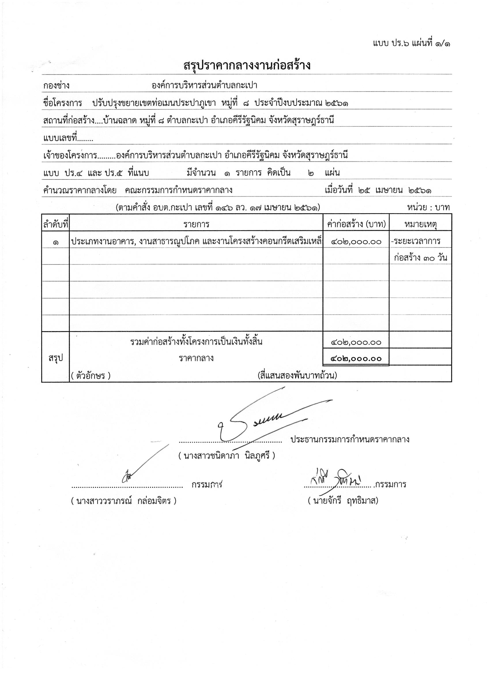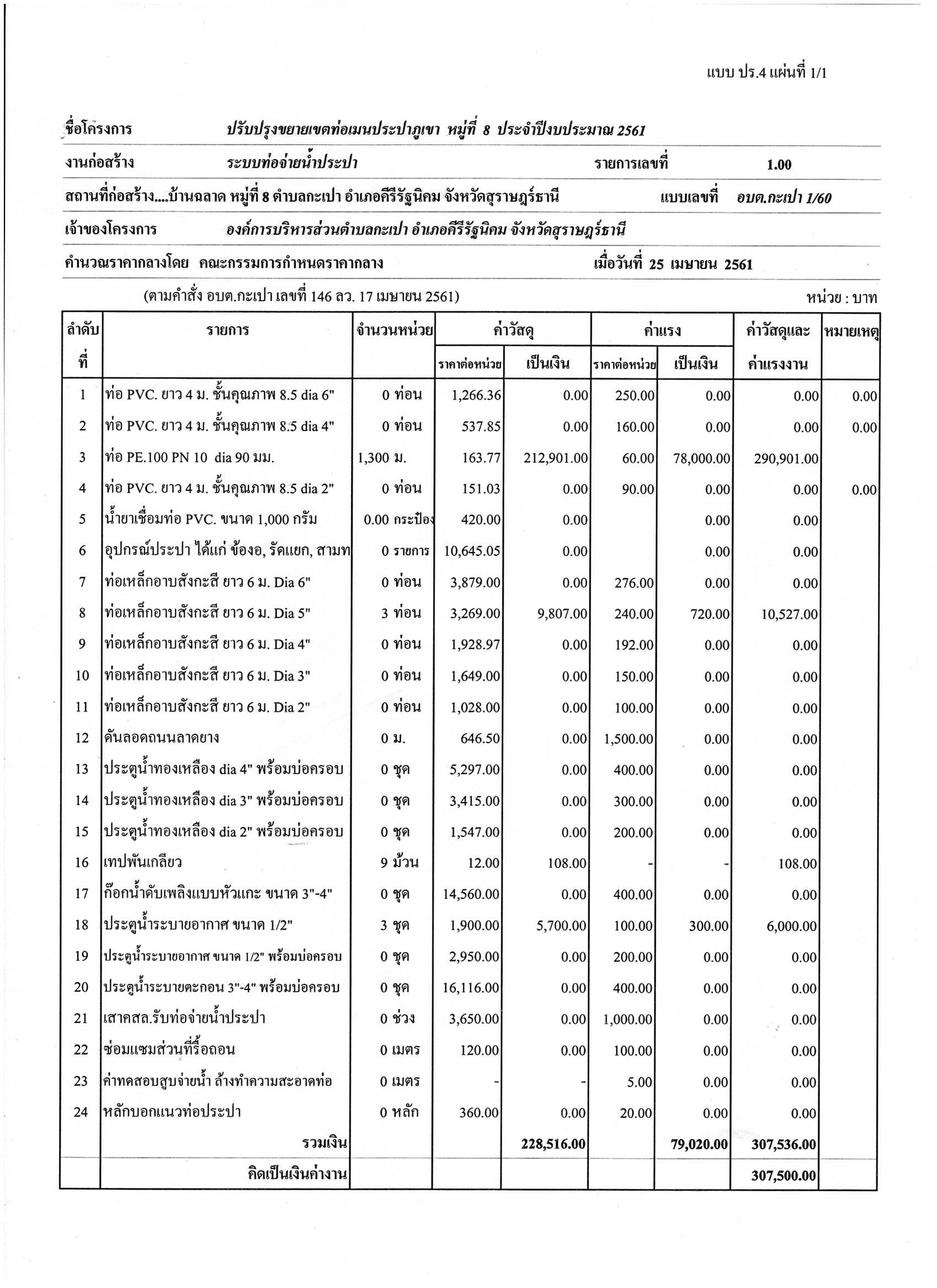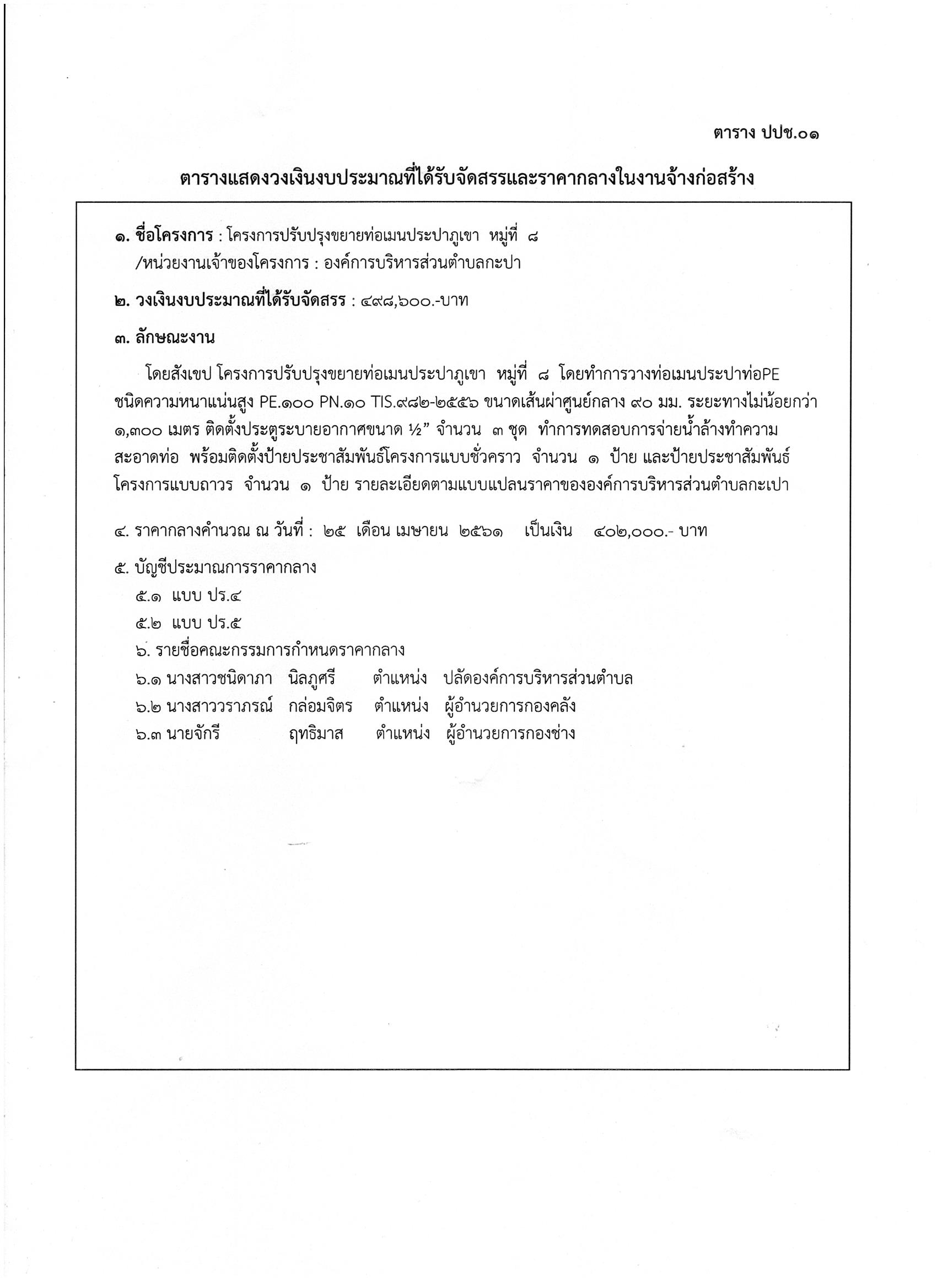 ประชาสัมพันธ์การเปิดเผยราคากลางและการคำนวณราคากลางการจัดซื้อจัดจ้างโครงการปรับปรุงขยายเขตท่อเมนประปาภูเขา หมู่ที่ 8