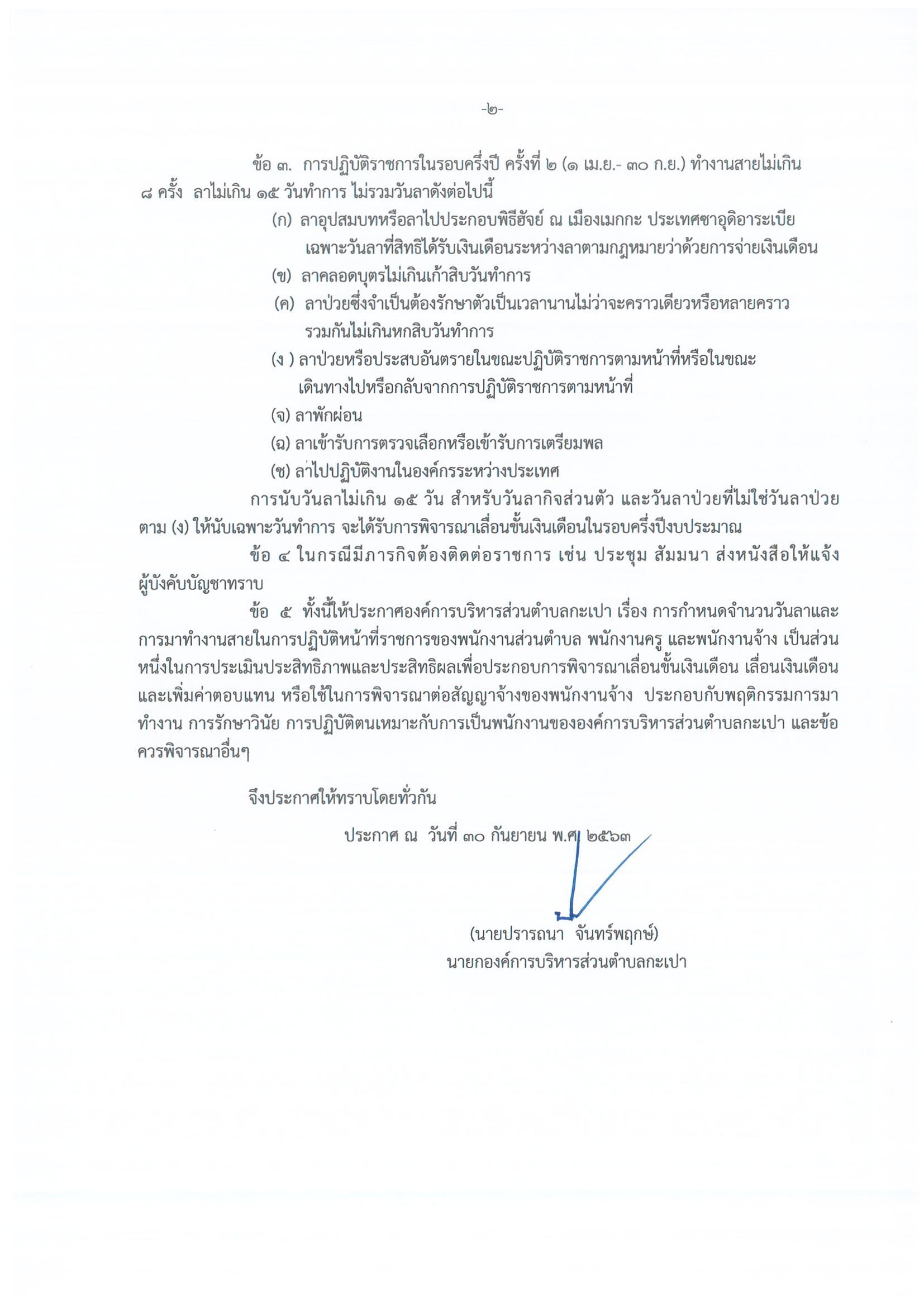 ประกาศกำหนดหลักเกณฑ์ การลา การขาดราชการและการมาทำงานสายของพนักงานส่วนตำบลประจำปีงบประมาณ 2564