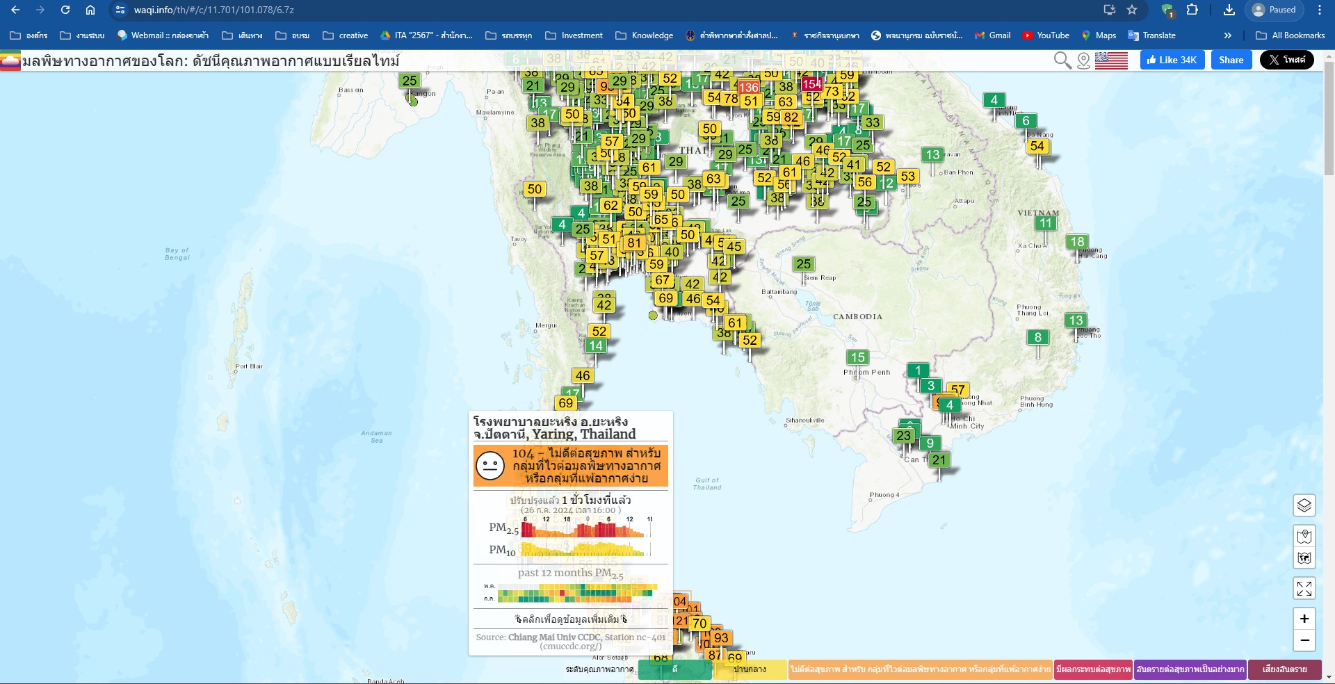 3. เว็ปไซต์ https://waqi.info/th/ สามารดูได้ผ่านเว็ปไซต์