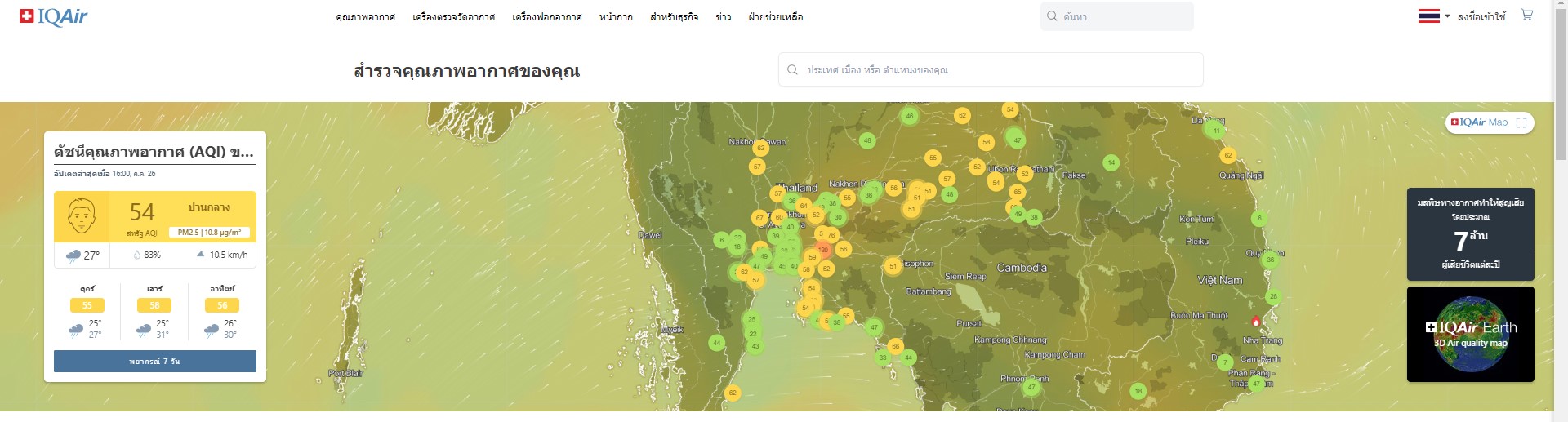 2. เว็ปไซต์ https://www.iqair.com/th/ สามารดูได้ผ่านเว็ปไซต์ หรือดาวน์โหลดแอปพลิเคชั่นในโทรศัพท์สมาร์โฟน
