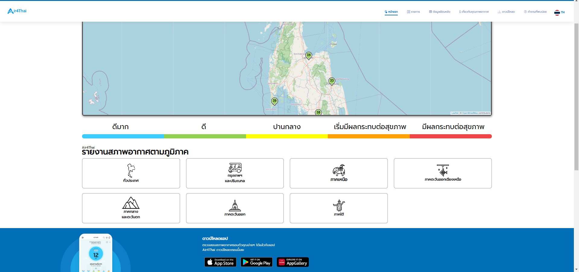 รายละเอียด : 1. เว็ปไซต์ http://air4thai.pcd.go.th/webV3/#/Home สามารดูได้ผ่านเว็ปไซต์ หรือดาวน์โหลดแอปพลิเคชั่นในโทรศัพท์สมาร์โฟน