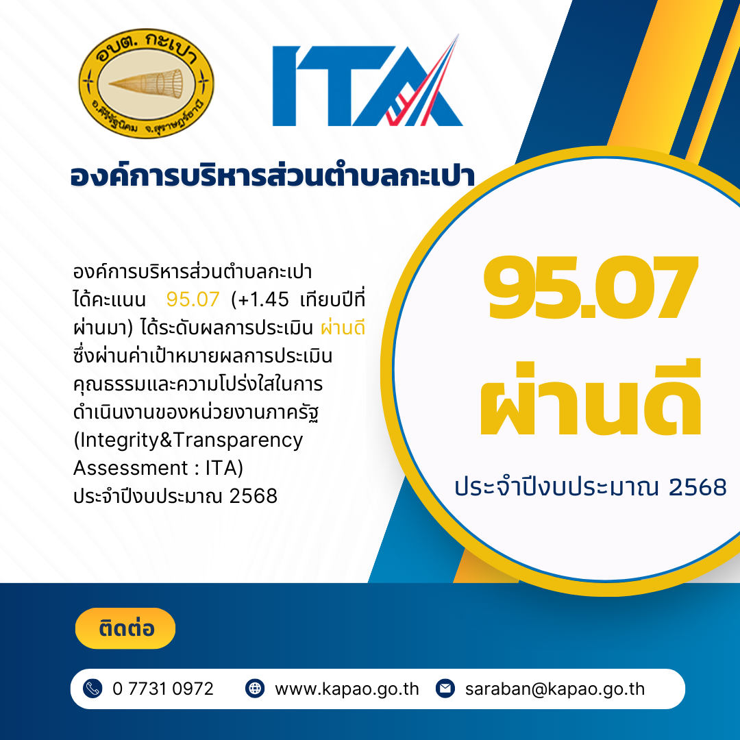 ประกาศผลการประเมินคุณธรรมแล้วความโปร่งใสภาครัฐ ประจำปีงบประมาณ 2568