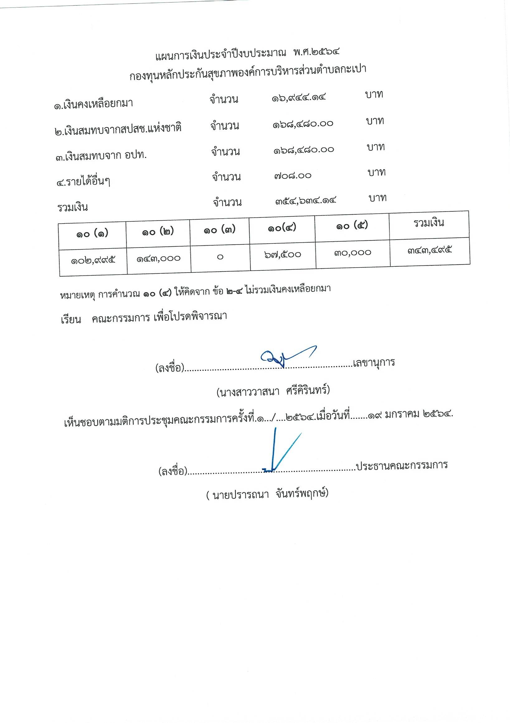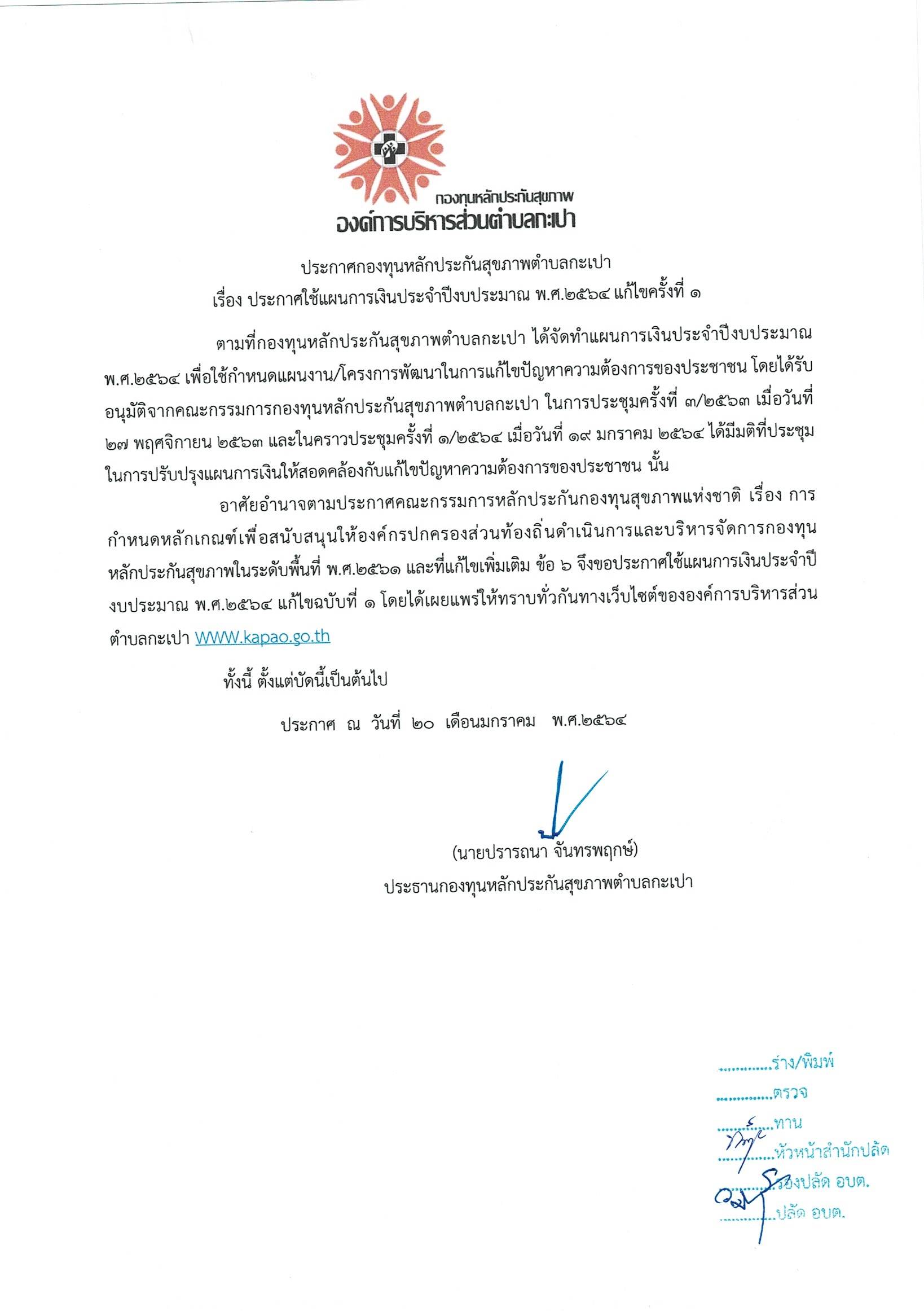 ประกาศใช้แผนการเงินประจำปี งบประมาณ พ.ศ. 2564 แก้ไขฉบับที่ 1