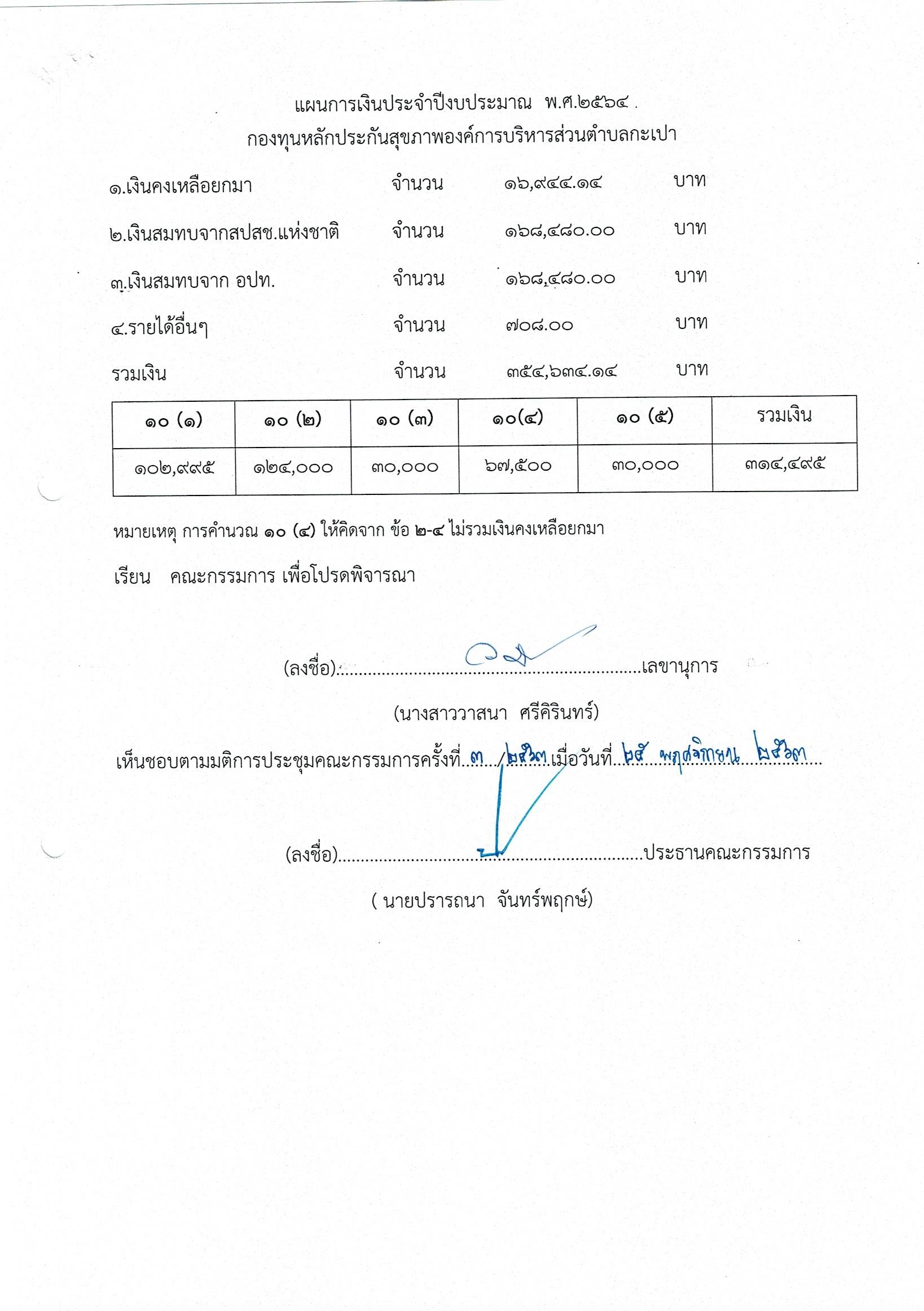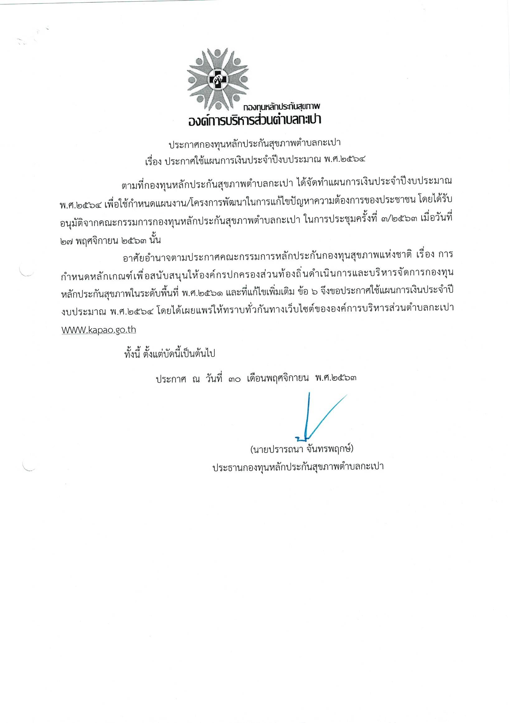 ประกาศแผนการใช้เงิน ประจำปี 2564